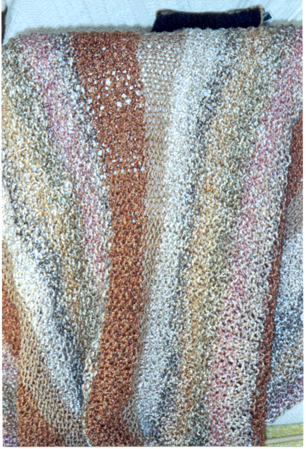 knit them into a shawl, it becomes a patchwork of other shawls that have been