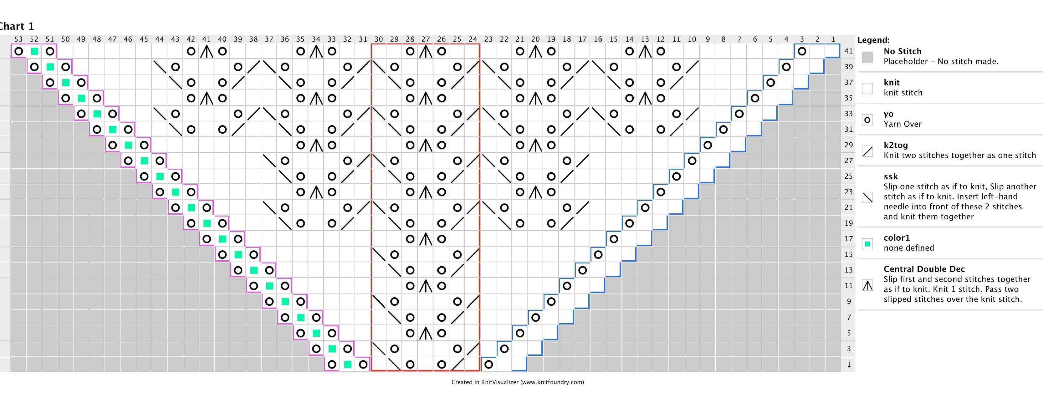 Row O O O O O O O O O 3 O O O O O O O O O 1 O O O O O O O O O 3 O O O O O O O O O 1 O O O O O O O O O 3 O O O O O O O O O 1 O O O O O O O O O 3 O O O O O O O O O 1 O O O O O O O O O 3 O O O O O O O O O 1 O O O O O O O O O 3 O O O O O O O O O 1 The O's represent the double yarnovers.